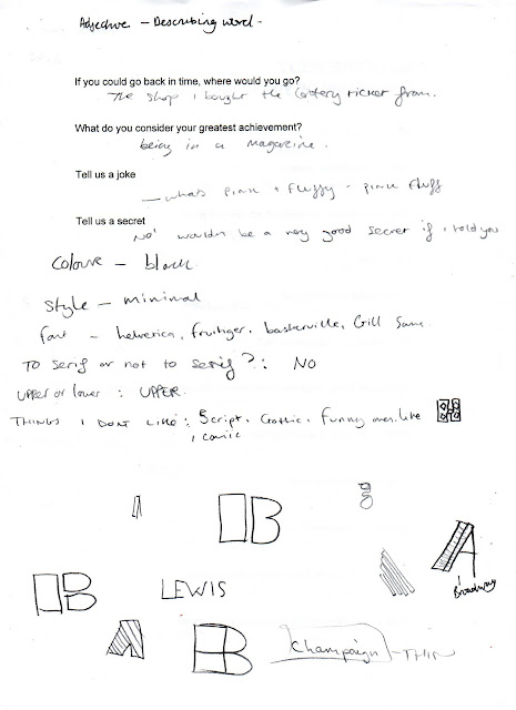 He prefers sans serif simple fonts such as helvetica, gill sans and frutiger. Although he likes tall thin fonts he also likes quite stylized chunky fonts. He dislikes script, gothic and rosewood.